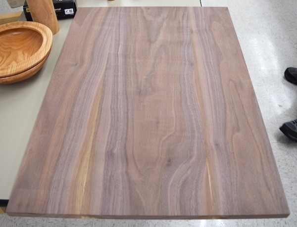 John Lovett from Fall Mills brought a slab of walnut he is using for a sewing machine stand top. The walnut slab was made from 3 pieces and assembled with help from Gary Runyon. John is looking for a someone with a router bit he can use to finish the top.