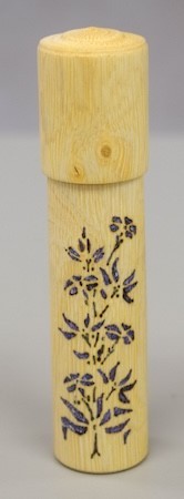 Gary Runyon showed a needle box he made out of hickory and finished with Doctor’s Wood Shop and wood burned with acrylic white pearlescent paint.