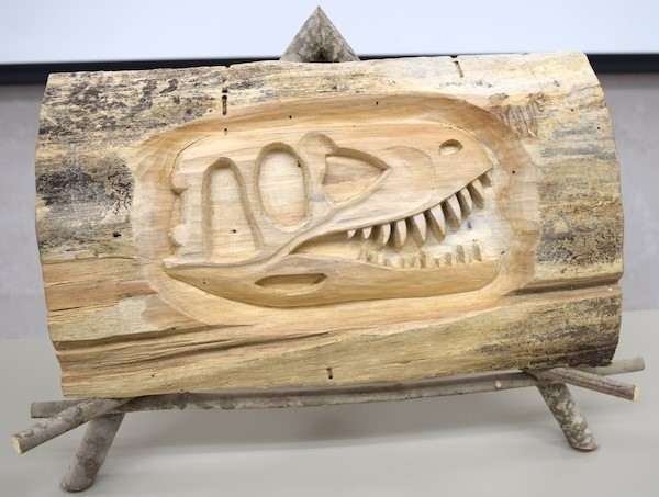 Paul also showed a T-Rex low-relief carving that he carved from a piece of basswood. He made this carving to use in a young carver demo, and he said that the main focus needed to be on the teeth.