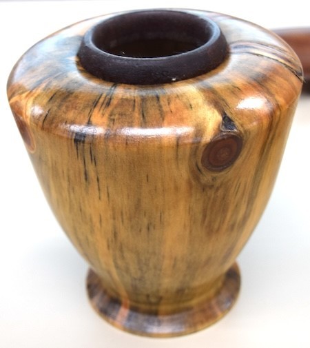 Vince also showed a vase he turned out of Norfolk Island pine. The vase was finished with shellac.