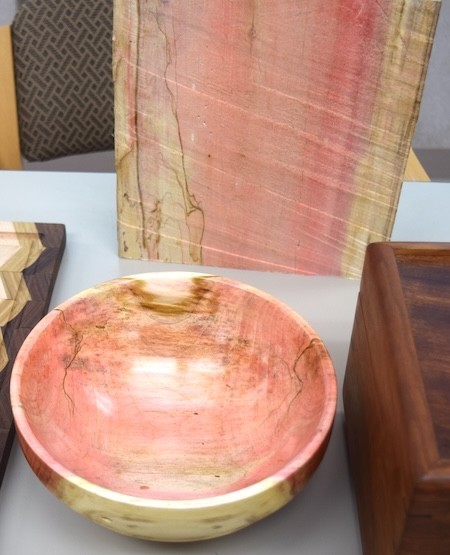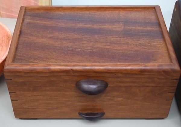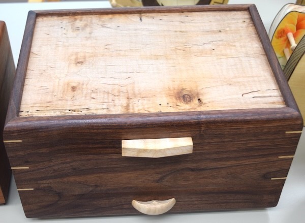 Michael and Brenda Zuccaro showed boxes they made out of cherry and walnut. The boxes have trays and drawers and have ambrosia maple and sapele tops.
