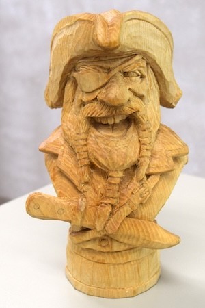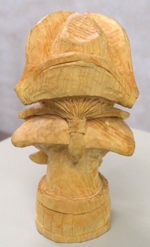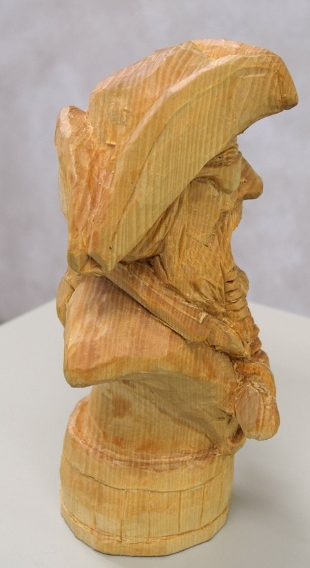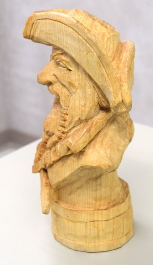 Jim Jolliffe showed a basswood carving of “Captain Joe” carved from a Rich Wetherbee roughout during his October 2025 seminar at Jim’s shop. The finish is mineral oil, so far. Jim plans to paint it to show more detail in the piece. (Pic1. Pic2, Pic3, Pic4)