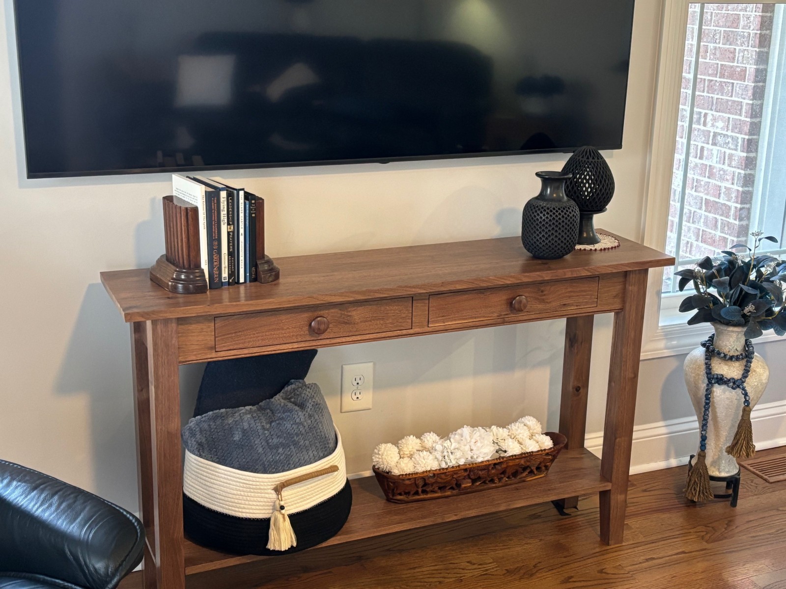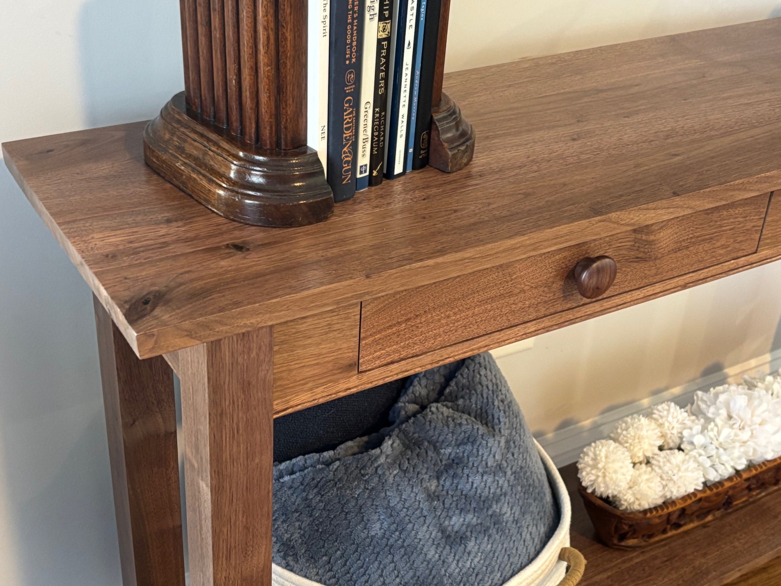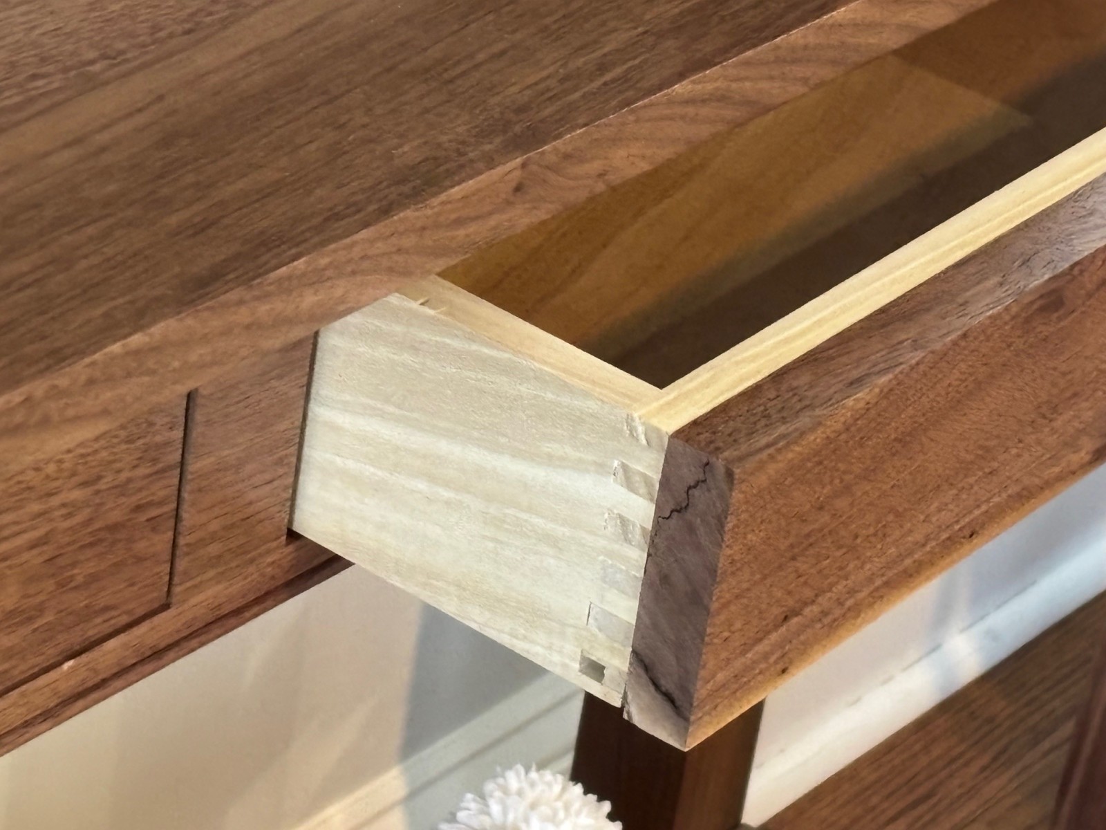Rick Dickson showed a walnut console table he made from a tree harvested on his property. He finished it with water-base poly. He also showed a cherry keepsake box “prototype” he made. He experienced warping after bringing it into his home after completing it in his unheated shop. Environmental conditions can make wood move with the changes in humidity and temperature. (Pic8. Pic9, Pic10) (Pic1. Pic2, Pic3)