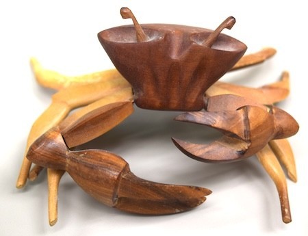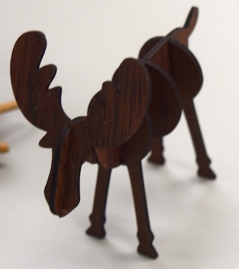 Karen Browning: Shared a wooden moose and a crab with movable legs to provide project ideas. She also displayed a wooden burnisher made by Doyle McConnell.