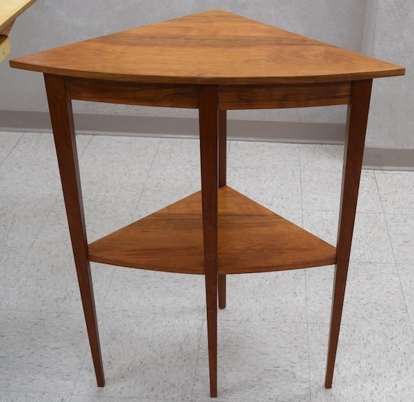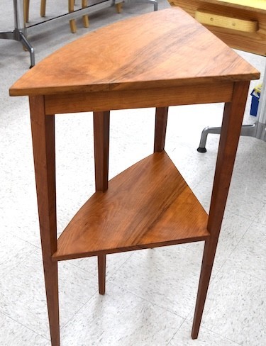 Michael Zuccaro: Displayed a cherry tray with splayed sides and a cherry table featuring bent sides, mortise and tenon joinery, and tapered legs.